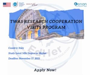 TWAS Research Cooperation Visits Program 2025-26 in Italy for Scientists from Least Developed Countries